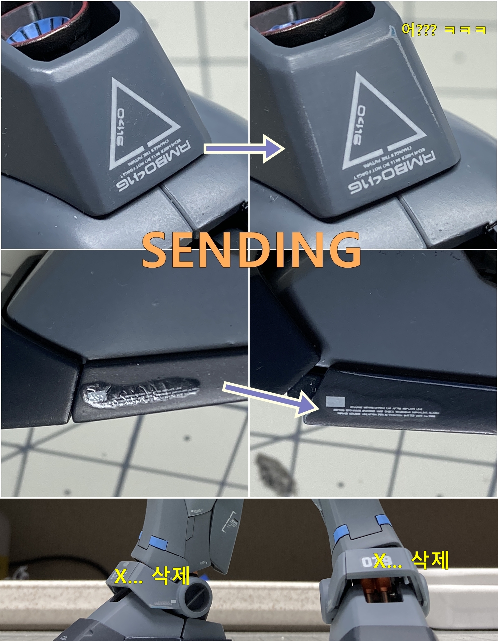 발목 부분은 센터에 넘 이상하게 박혀 있어서 그냥 사포로 싹 밀어내고 그레이 색상 대충 뿌렸습니다.