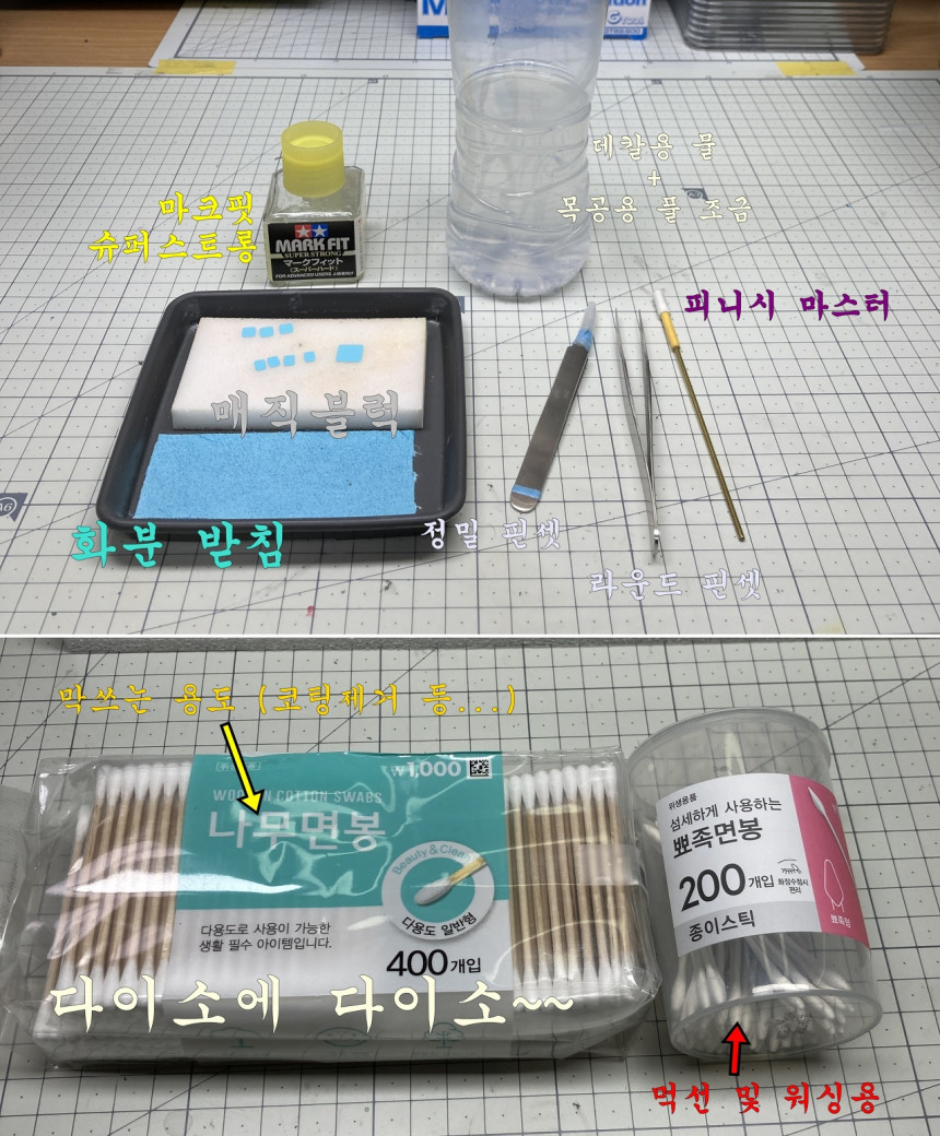 이때 사용하는 핀셋은 데칼을 정확하게 잘 잡아 줄 수 있는 것을 사용하는 것이 스트레스를 덜 받는 지름길입니다.^^