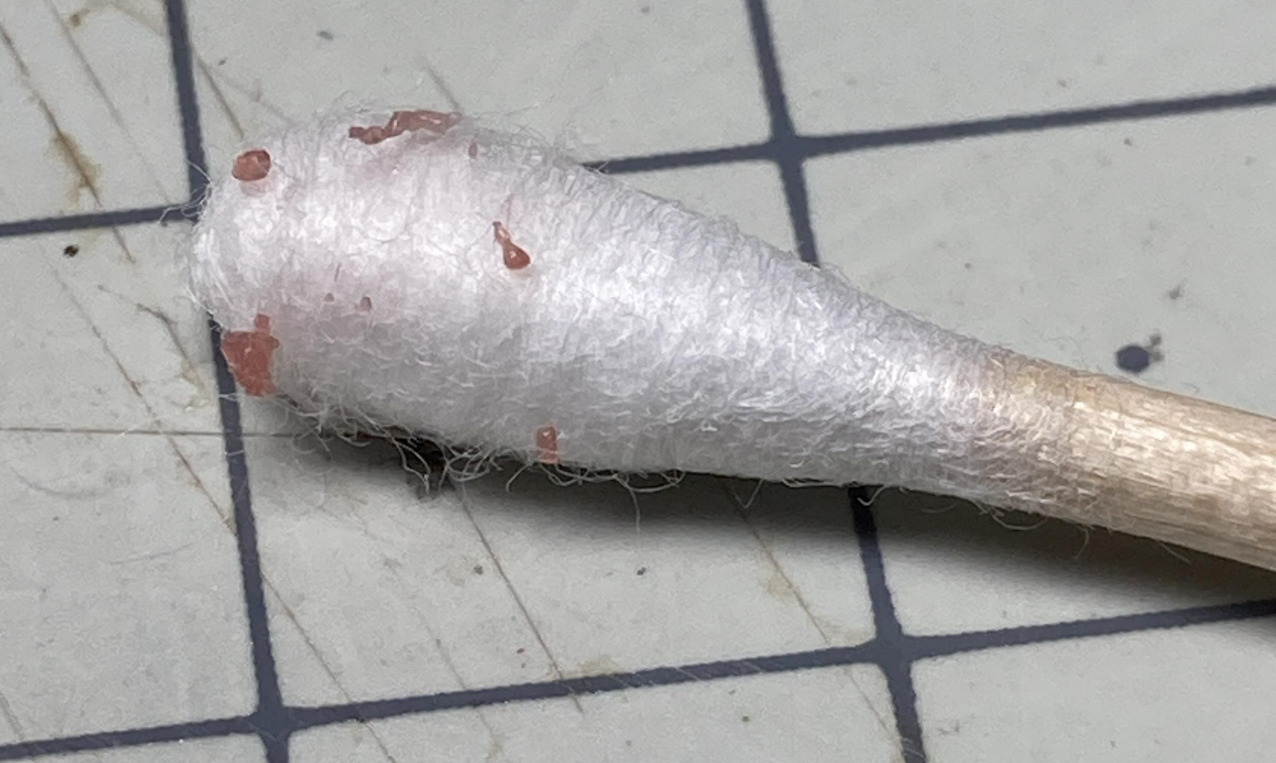 세필 붓으로 에너멜 신너를 데칼의 표면에 바른 후 대략 5초 정도 기다렸다가 깨끗한 면봉으로 슥~ 닦아내고~