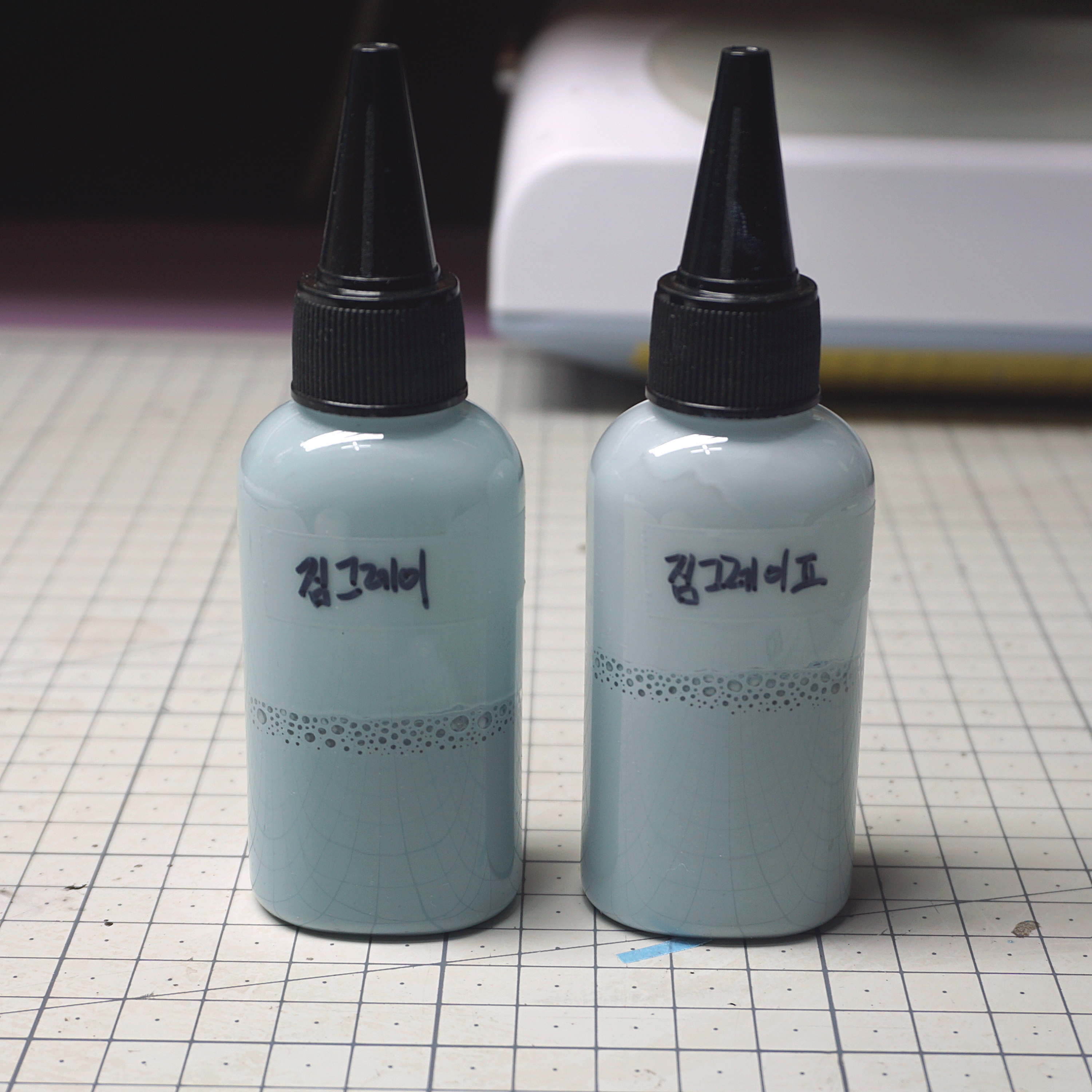 원 조색 목표는 조금 그레이틱 하면서 파란 기운이 좀 강화되고 옥빛이 좀 약화된 색상?을 원했는데...