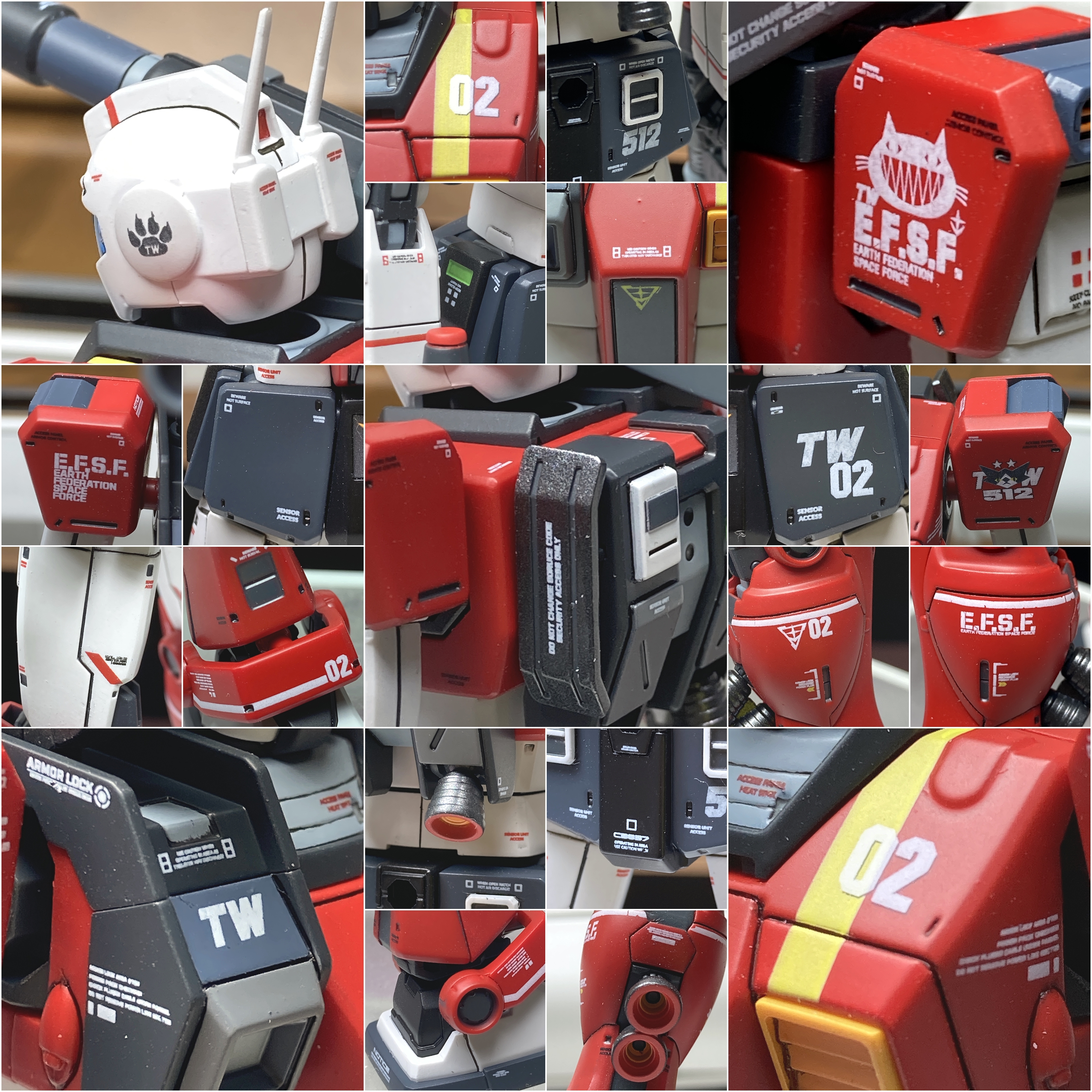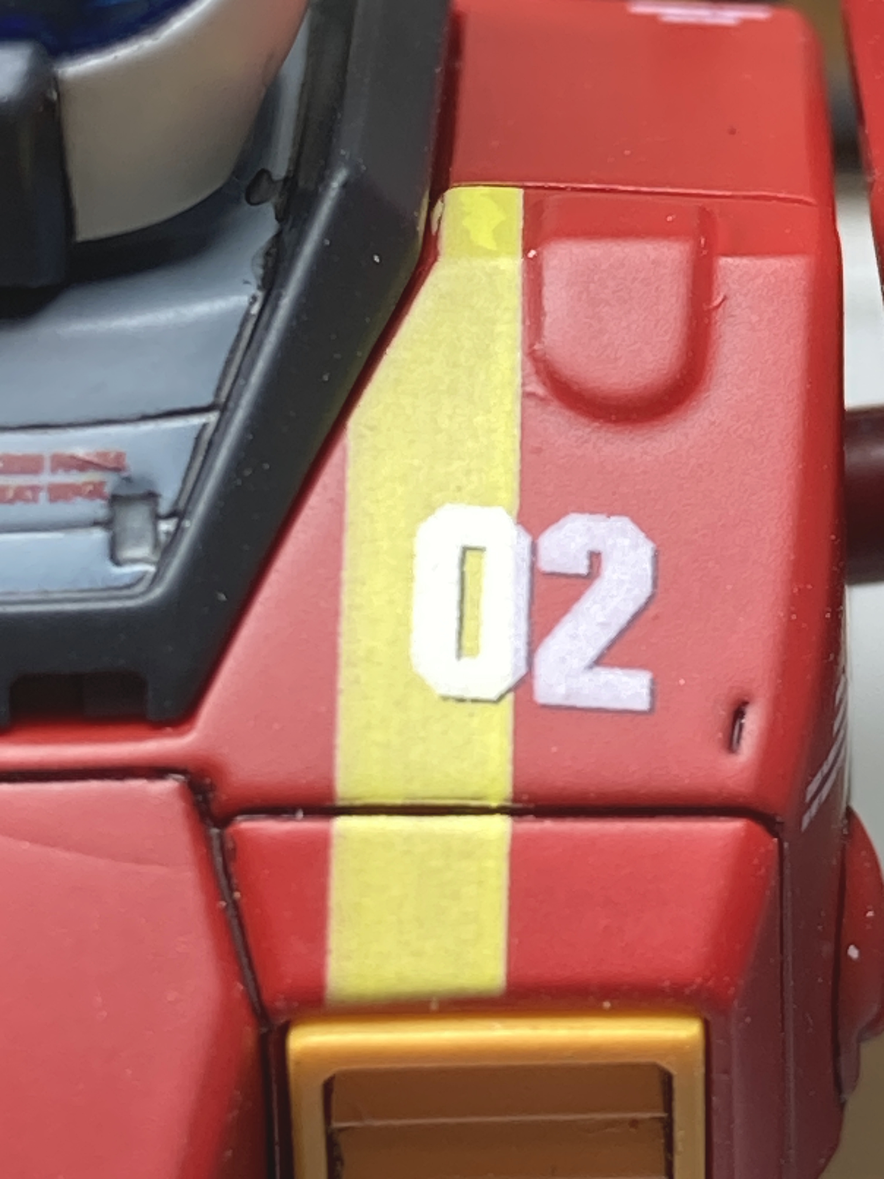 가슴 쪽은 노란 라인과 02숫자, 두개의 데칼이 겹쳐져서 붙어야 합니다.