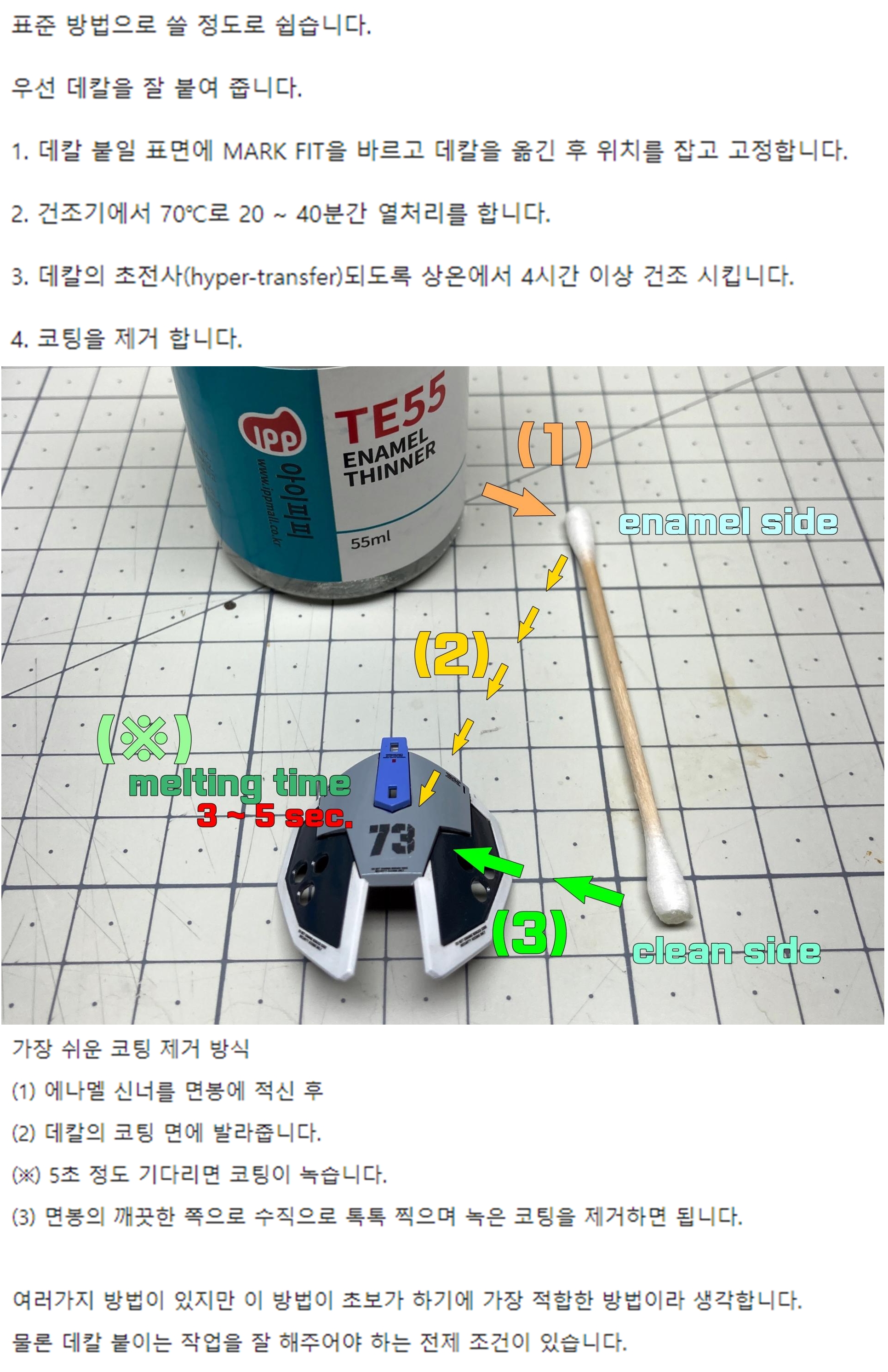 작은 크기의 코션 데칼을 많이 사용하기 때문에 작업이 까다로울 수 있으나 아래의 방법대로 하면 조금은 쉽게 할 수 있습니다.