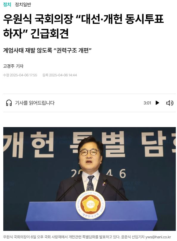 두달 안에 헌법을 뜯어고칠 내용을 만들어서 조기 대선때 국민 투표 하잔다.