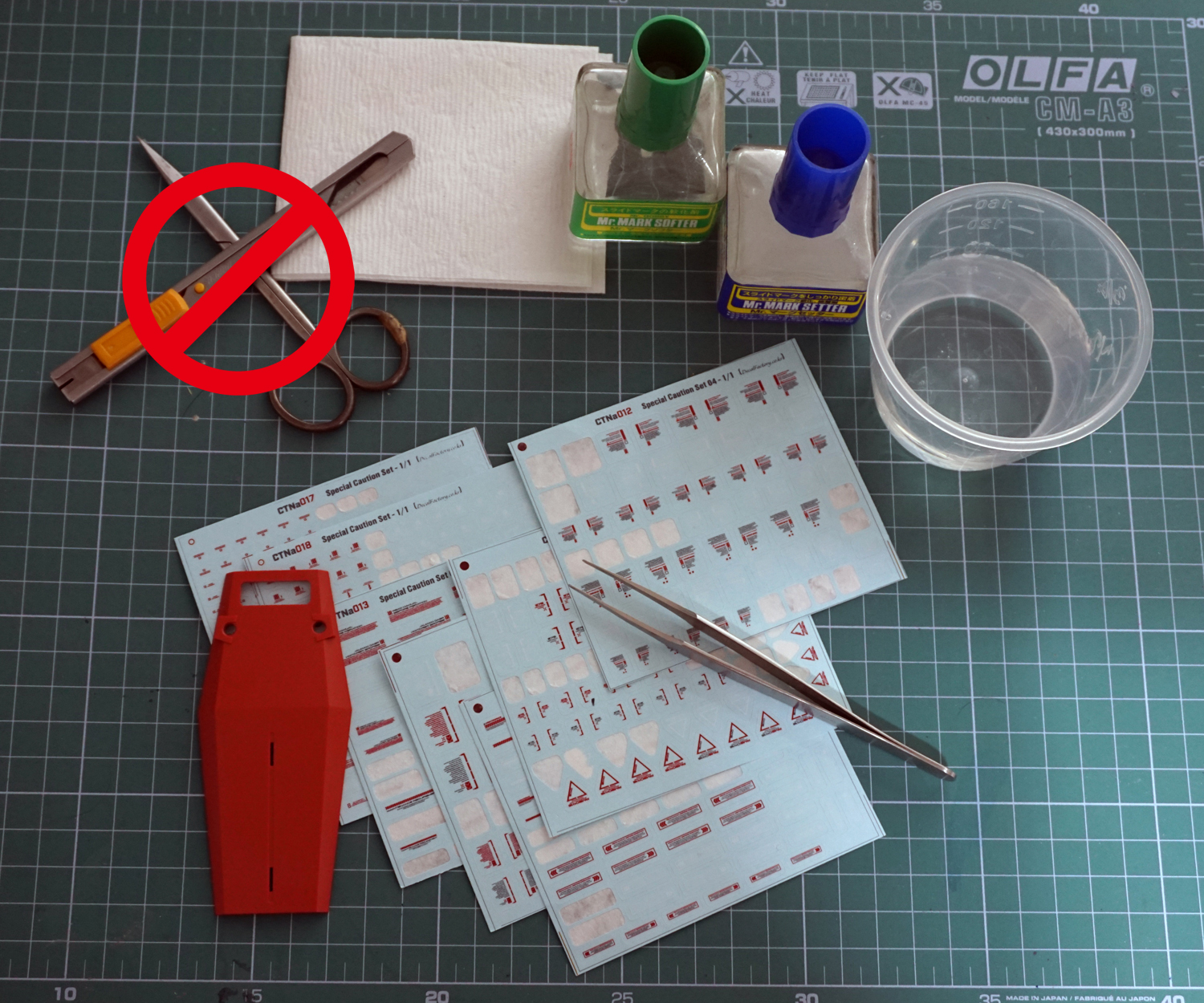 - 핀셋으로 살짝 건드려 데칼이 잘 움직인다면, 용지에서 완전히 분리된 것입니다.