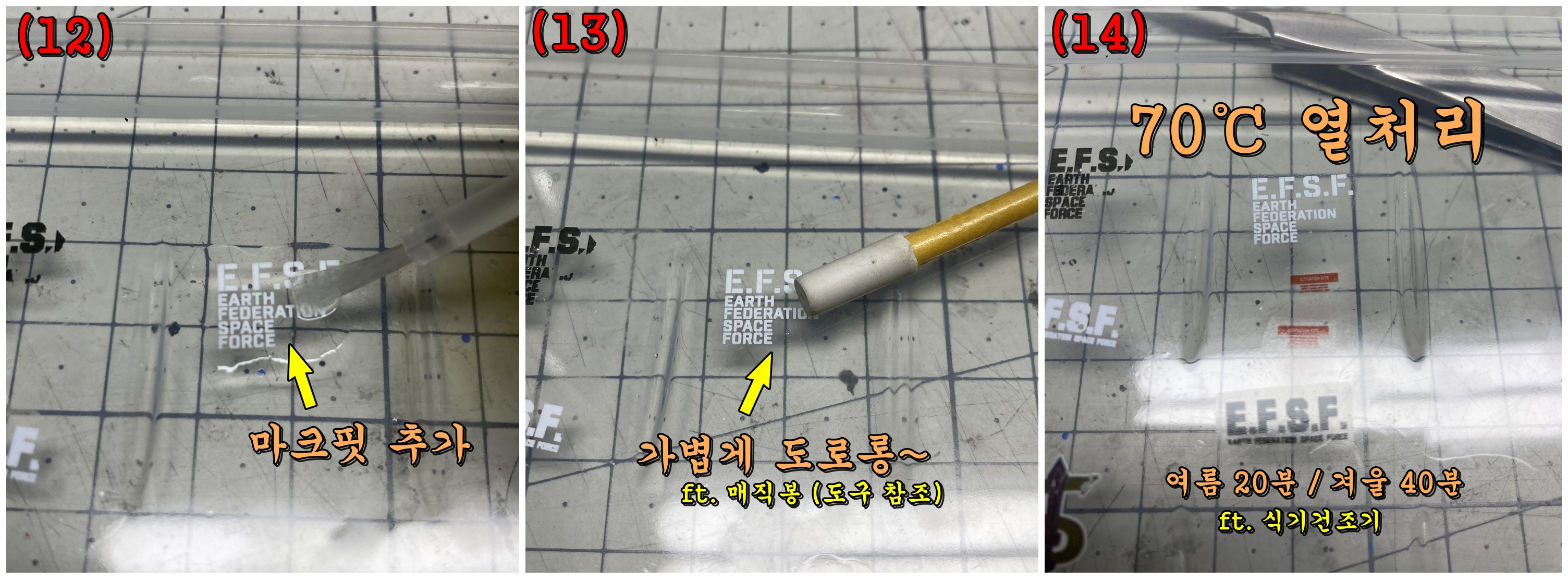 작업이 끝이 난 데칼은 건조기 (70℃, 여름 20분 ~ 겨울 40분 이상)에서 열처리를 한 후...