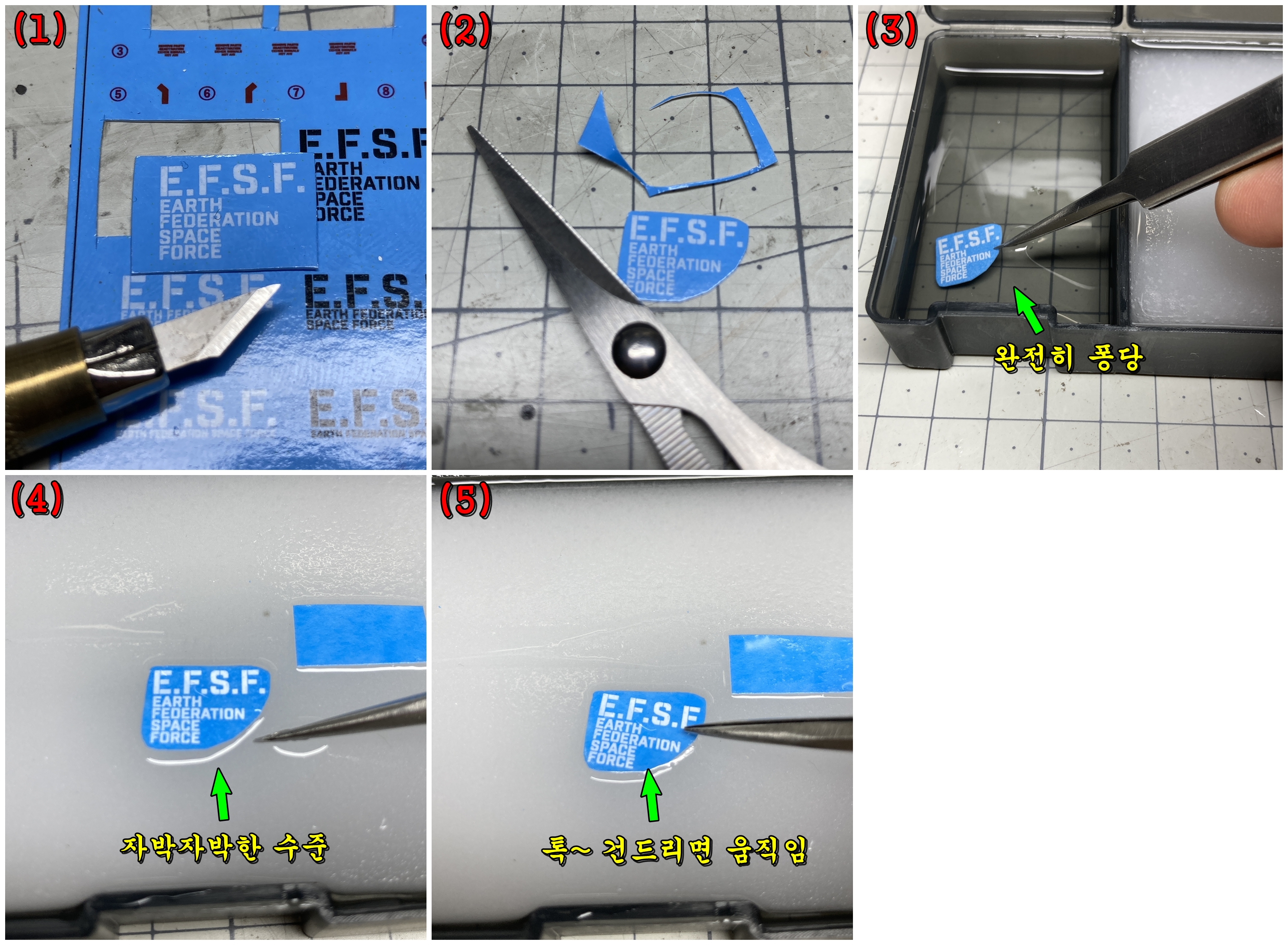 (5) 핀셋으로 톡~! 건드리면 데칼이 가볍게 움직이는 상태가 되어야 합니다. (약 5 ~ 10초)
