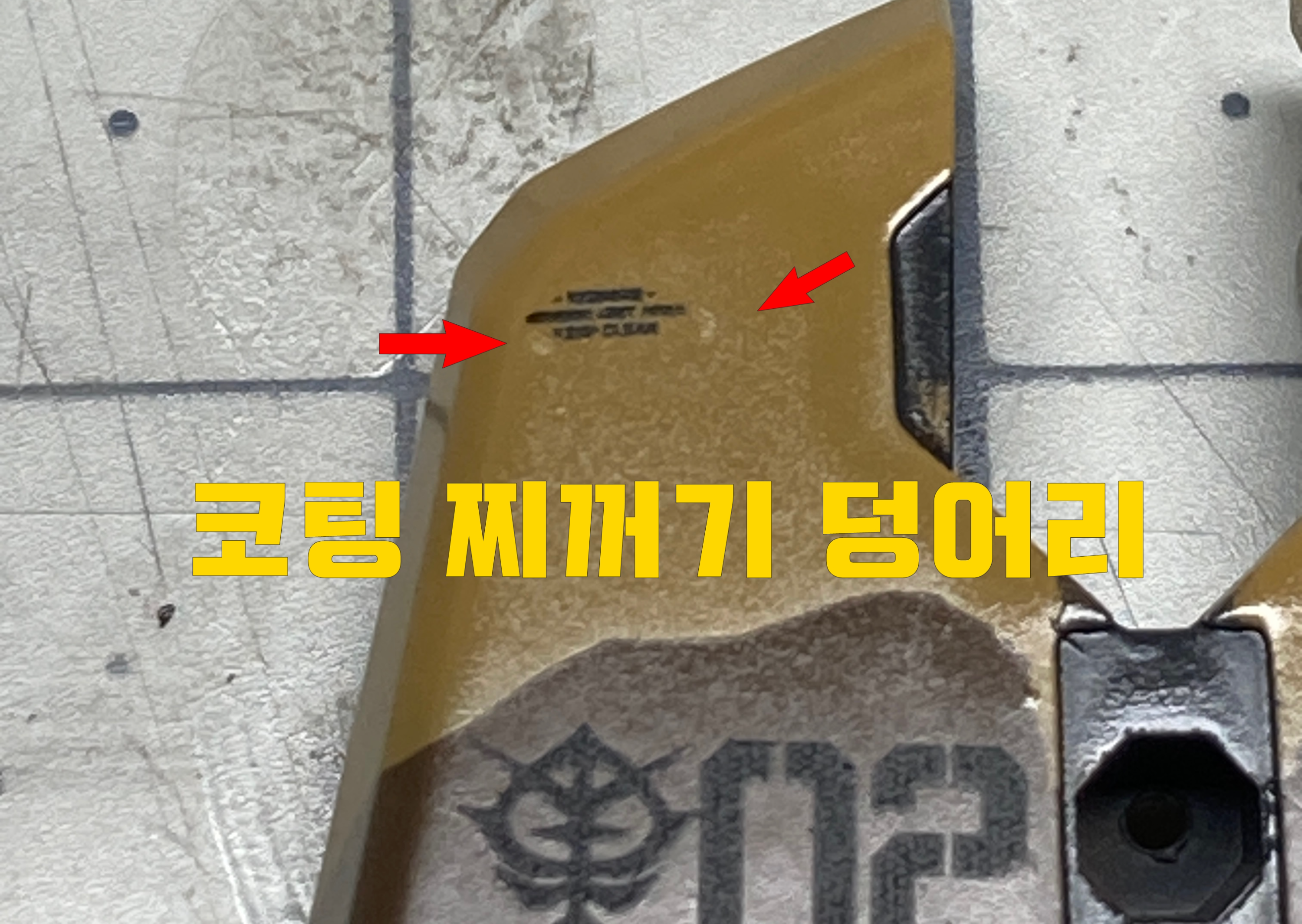 코팅을 제거한 표면을 광내는 사포 (#1000방 이상)로 가볍게 센딩하는 것도 좋은 방법입니다.