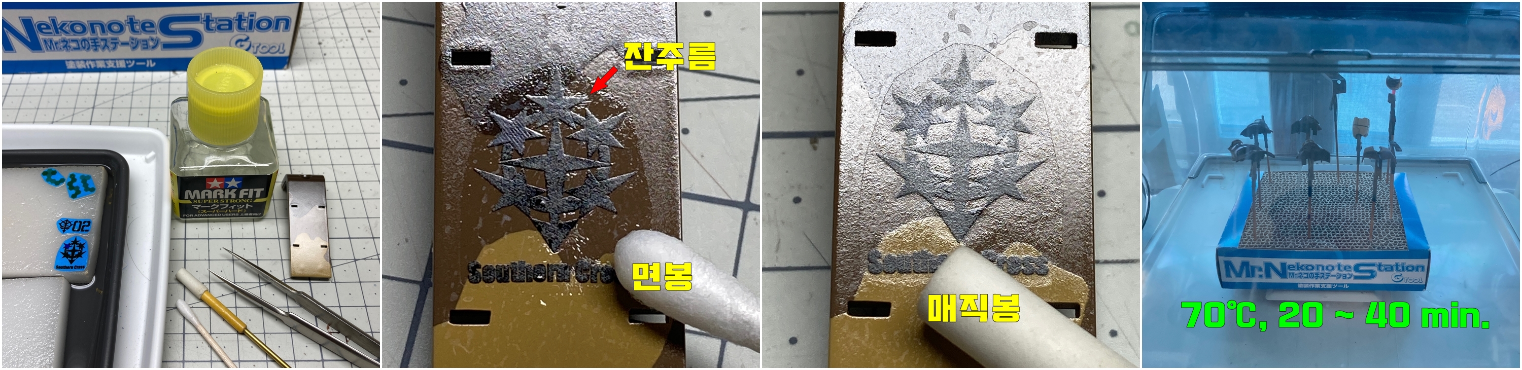 데칼 녹이는 용으로 처리하는 신너의 양은 과하지 않지만, 또한 부족하지 않게 잡는 것이 중요합니다.